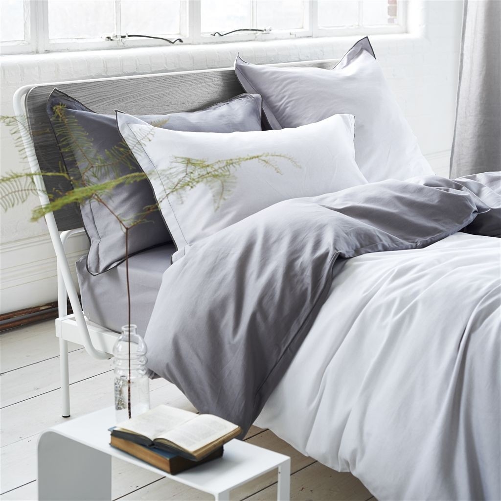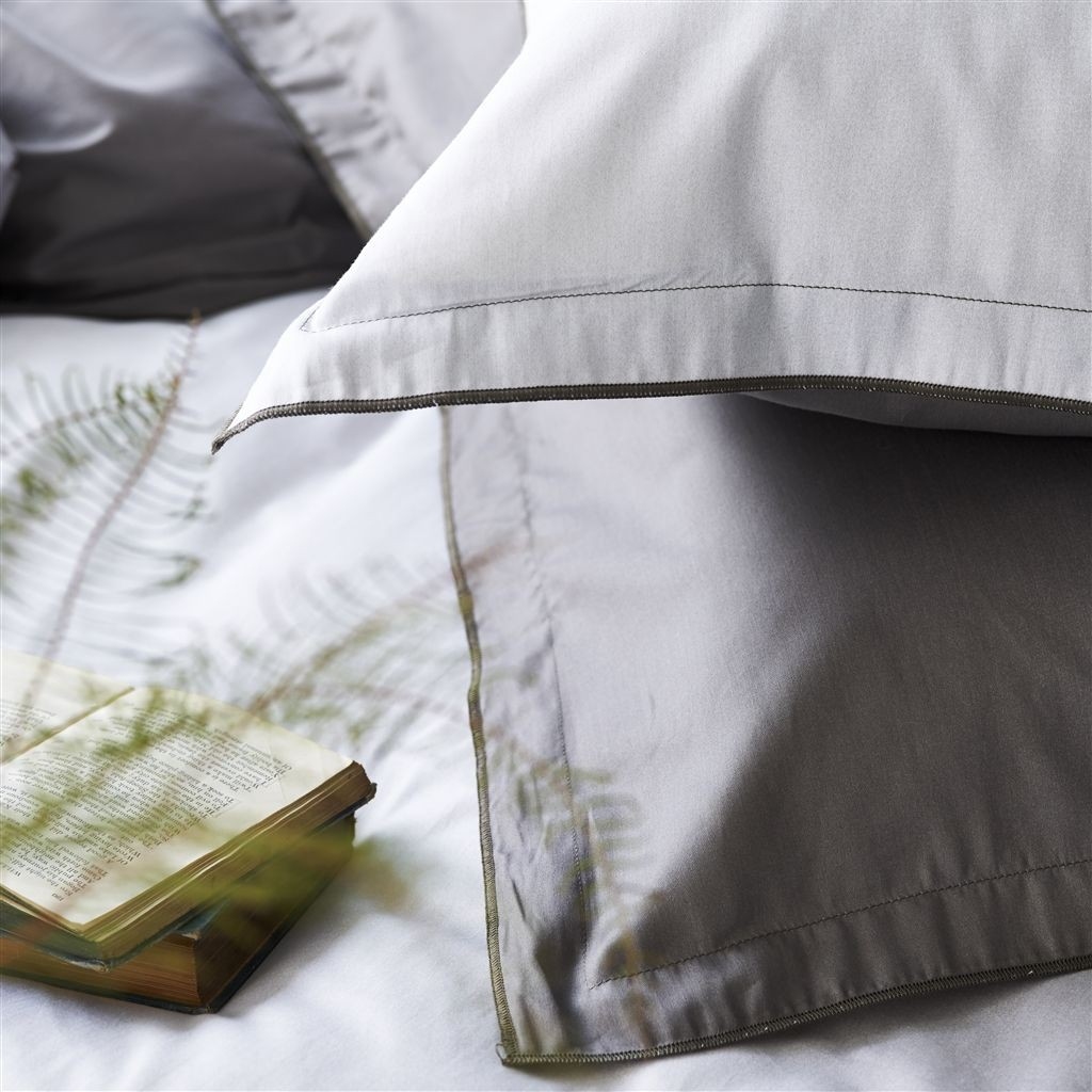 A fronha de almofada SARAILLE Zinc é perfeita para acompanhar a tendência de "Tie and Dye": é uma gradação de cores suaves, desde taupe claro até branco brilhante, impresso em um cetim de algodão de 200 fios. A fronha de almofada tem um volante de 3 cm.