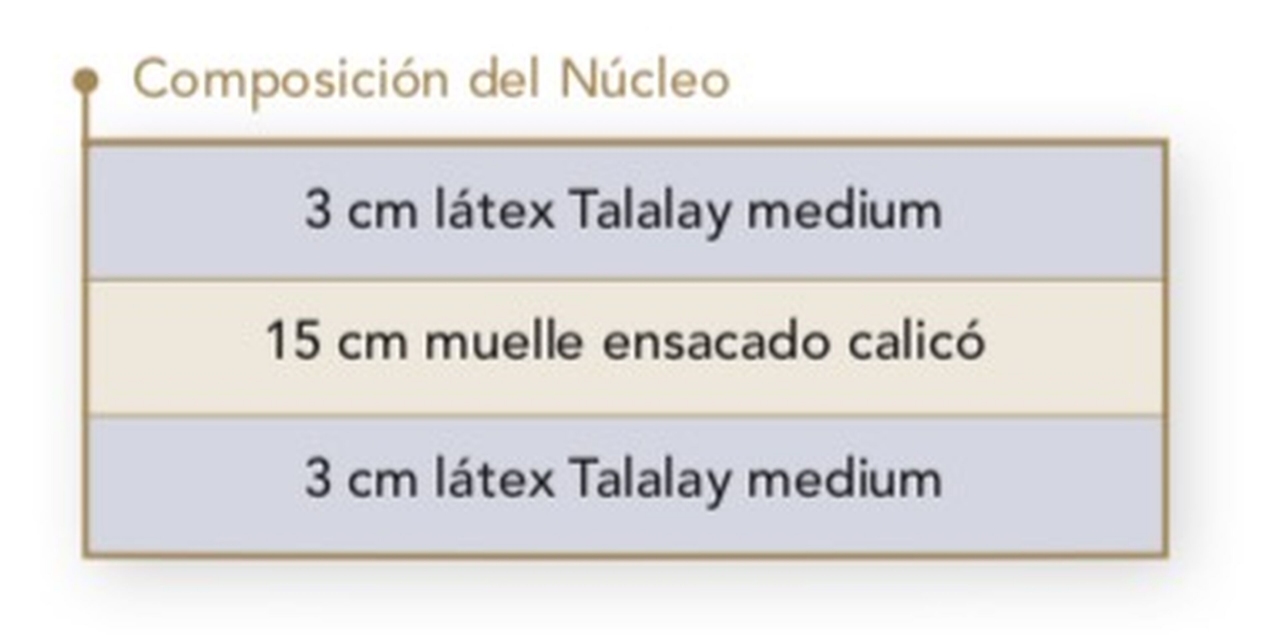 O desenho exclusivo do núcleo permite adaptar um acabado artesanal e clássico (como o do capitonê) ao conjunto de descanso articulado, mantendo as mesmas propriedades excecionais que um modelo clássico proporciona para o descanso, mas com as vantagens de um colchão articulado.